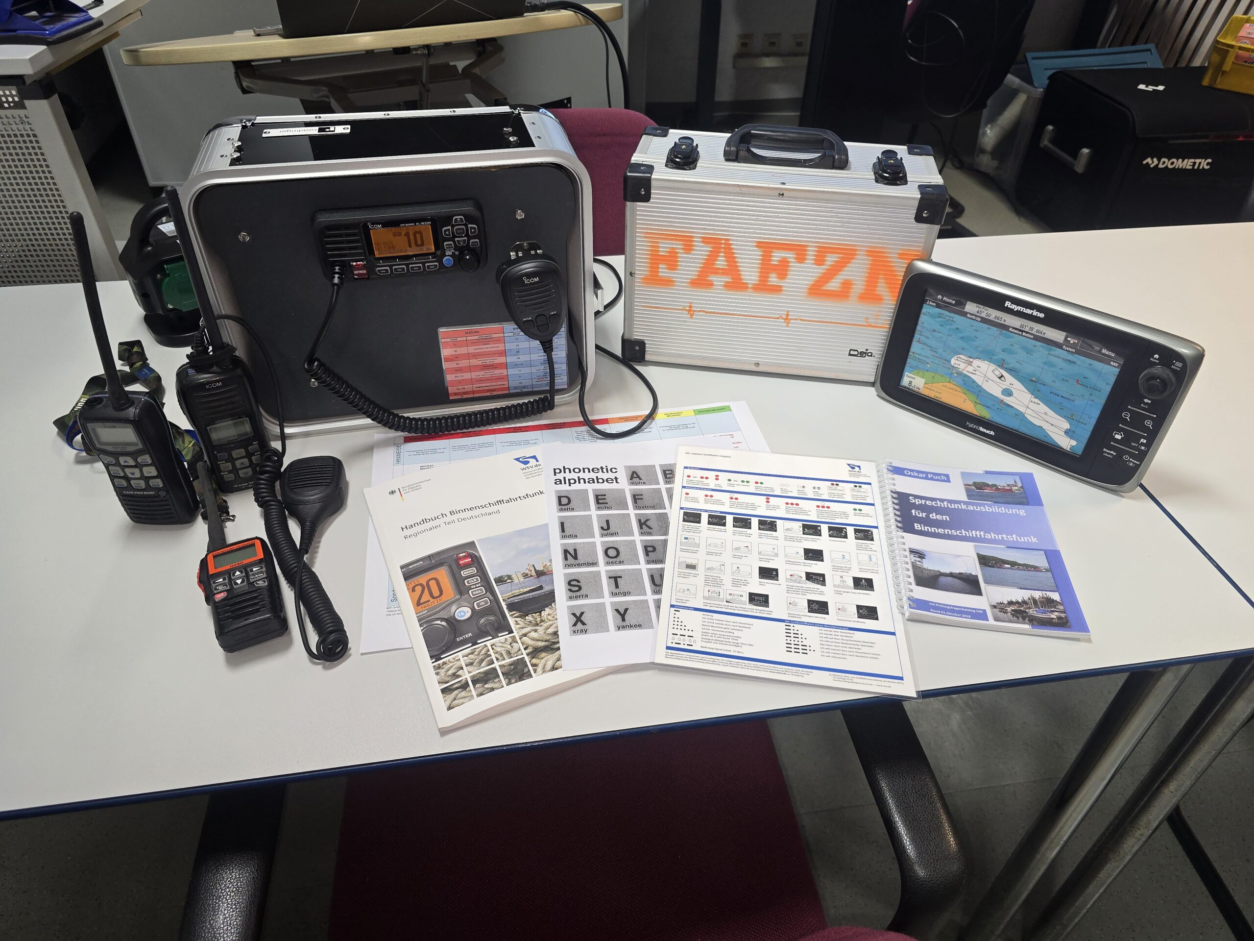 Der Teilnehmer erlernt den sicheren Umgang mit UKW Funkgeräten im Binnenschifffahrtsfunk. Bestandteil des Lehrganges sind darüber hinaus die IUK Strukturen des Binnenschifffahrtsfunks im Rahmen der Gefahrenabwehr.
